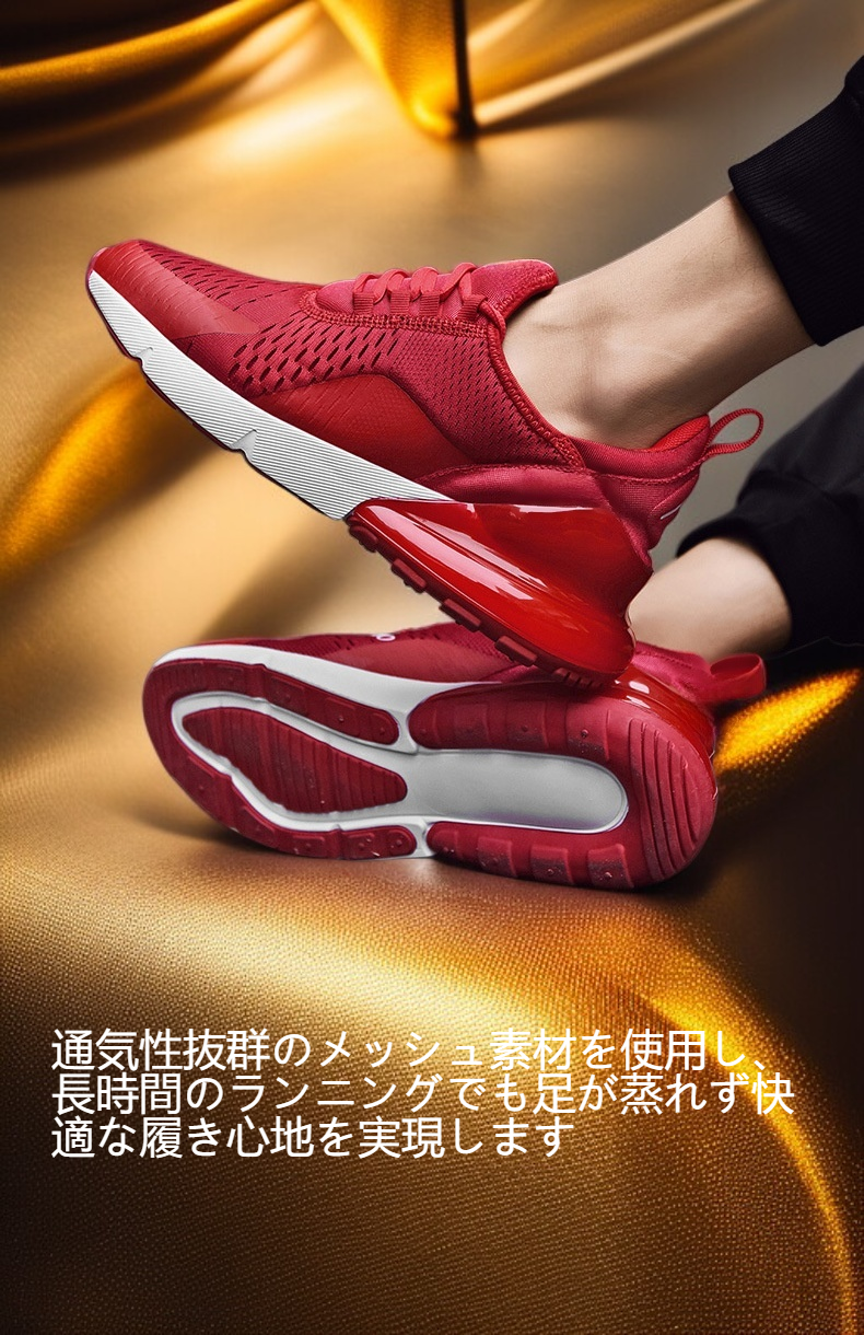 ● 通気性抜群のメッシュ素材を使用し、長時間のランニングでも足が蒸れず快適な履き心地を実現します。